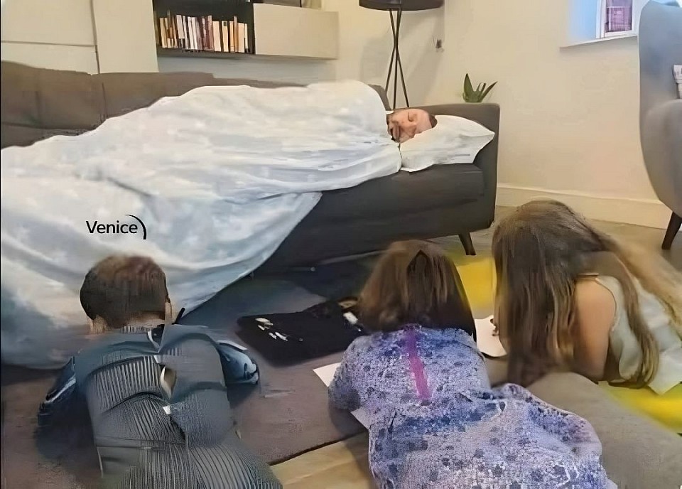 أب ذكي أراد أن يرتاح من فوضى أولاده في البيت و ينعم بقليل من النوم والهدوء فقام بإقامة مسابقة رسم لمن يرسم لوحة أب وهو نائم ، الوقت ساعتين